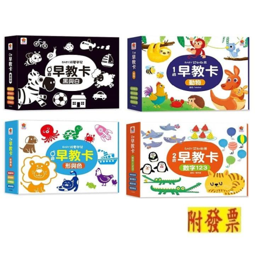0歲早教卡:黑與白 形與色 20張雙面設計的視覺圖卡,   輪廓明確、形狀豐富、空間概念,   藉由簡單的感官刺激,   激發寶寶主動探索,   同時提升專注力、穩定情緒,   搭配遊戲與寶寶進行互動,   還可增進親子互動關係。   ★使用方法:   第一階段 擺放在嬰兒床邊,讓寶寶能專心注視圖卡。   第二階段 圖卡上下、左右或前後緩慢移動,訓練寶寶雙眼的聚交及追視能力。   第三階段 每張圖卡約觀看10~20秒,並引導寶寶認識不同形狀及各種物品。   *內容物:20張圖卡,雙面設計,共40種圖案。   *適用年齡:0歲以上 規格:盒裝 / 17.4 x 24.7 x 4 cm 1歲早教卡:動物 40種可愛動物,   細膩畫風搭配生活場景,   激發寶寶主動學習、擴展認知詞彙量,   搭配遊戲還可促進邏輯思維與親子互動。   【圖卡可以這樣玩!】   ★認識動物:觀察圖卡中動物的特徵,並朗誦詞彙,引導孩子跟讀。   ★動物找找:認識動物後,再搭配找找遊戲,增添學習樂趣與效果。   ★扮演遊戲:家長或孩子抽卡並模仿圖卡上的動物,讓對方猜猜抽到了什麼動物。 2歲早教卡:數字123 從1數到20,   童趣插圖搭配筆順練寫,     數字+數量+對比+認知變得好簡單!   搭配遊戲還可培養推理分析與問題解決能力。   【圖卡可以這樣玩!】   ★數數遊戲:1-20階段式建立量與量詞的基礎概念。   ★順序連線:1、2、3、4、5……排出正確的數字順序!   ★多少對決:從小數字展開對決,比一比哪張圖卡上的數量比較多?   ★手指練寫:跟著筆順進行數字描寫。   ★顏色找找:可加入顏色概念,提升遊戲困難度。例如:紅色的褲子有幾件? 規格:盒裝 / 40頁 / 17.4 x 24.7 x 4 cm