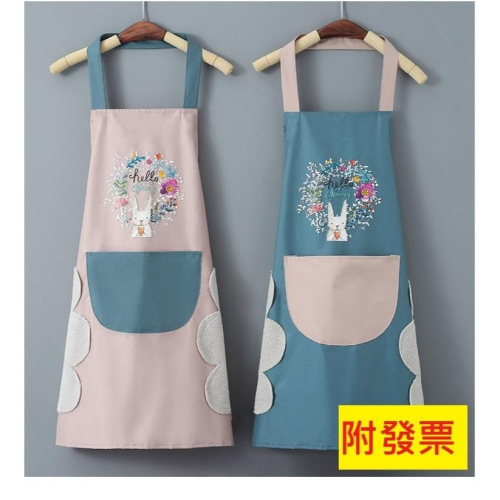 【小資特】 防水擦手圍裙 圍裙 防水圍裙 擦手圍裙 大口袋圍裙 防水防油 可擦手圍裙 花環兔 廚房