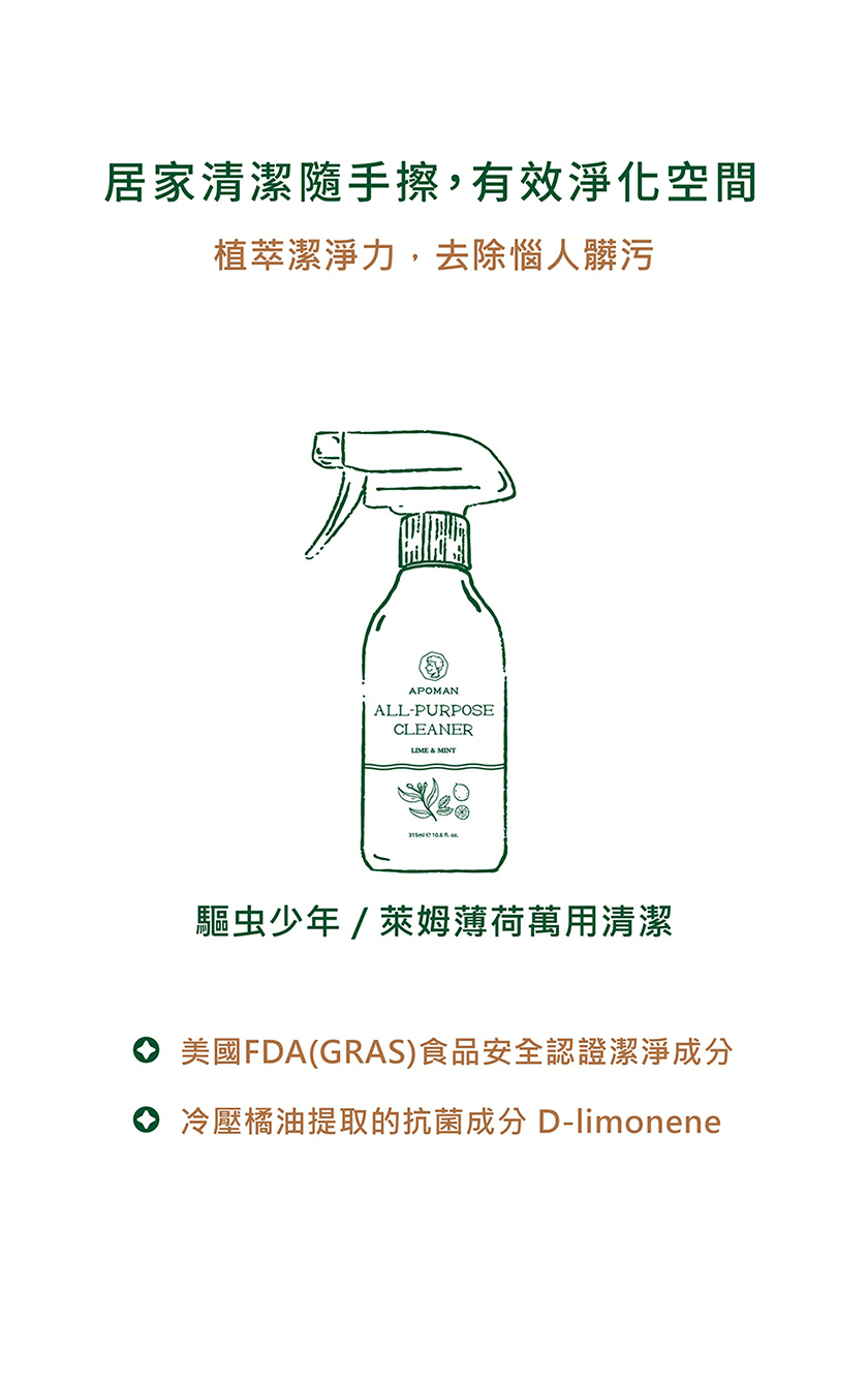 ➁驅蟲萬用清潔劑315ml (萊姆薄荷) / 附噴頭