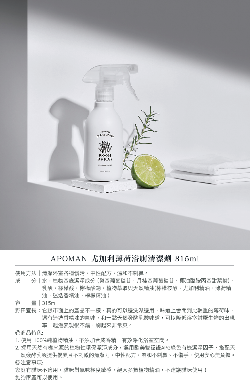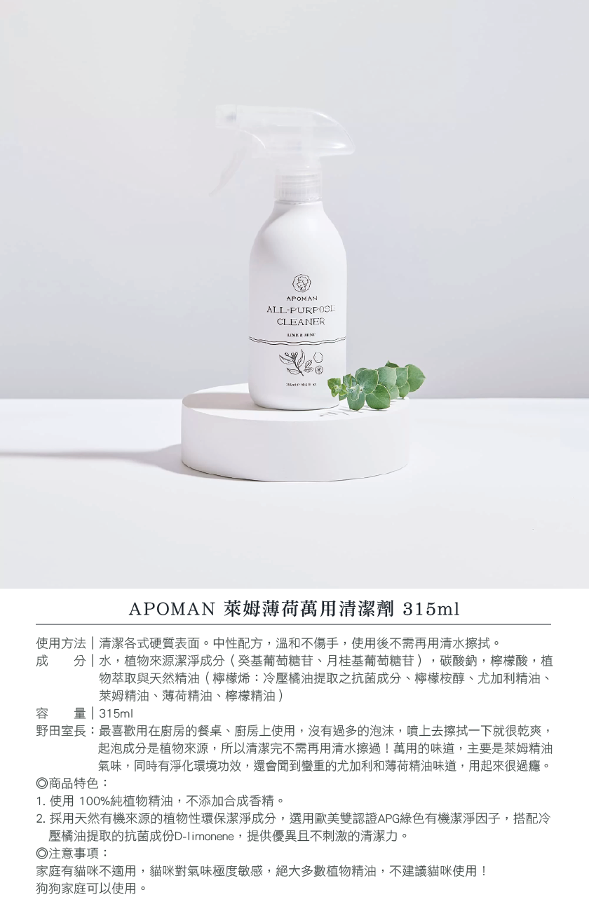【野田實驗室】APOMAN植萃精油居家清潔劑(4入免運組)