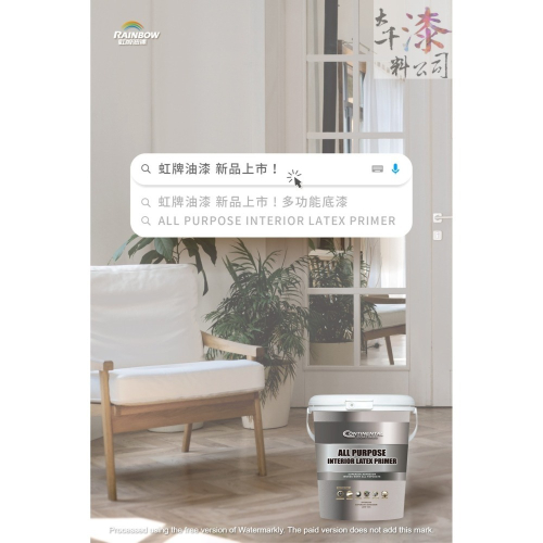 擁有良好的附著性,可適用於多種底材,例如:R.C混凝土、批土、塗裝板、矽酸鈣板、發泡板、系統櫃板材、美耐板、波利板等等,能抑制牆面黴菌滋生,具有優異的耐鹼、耐水性能。
