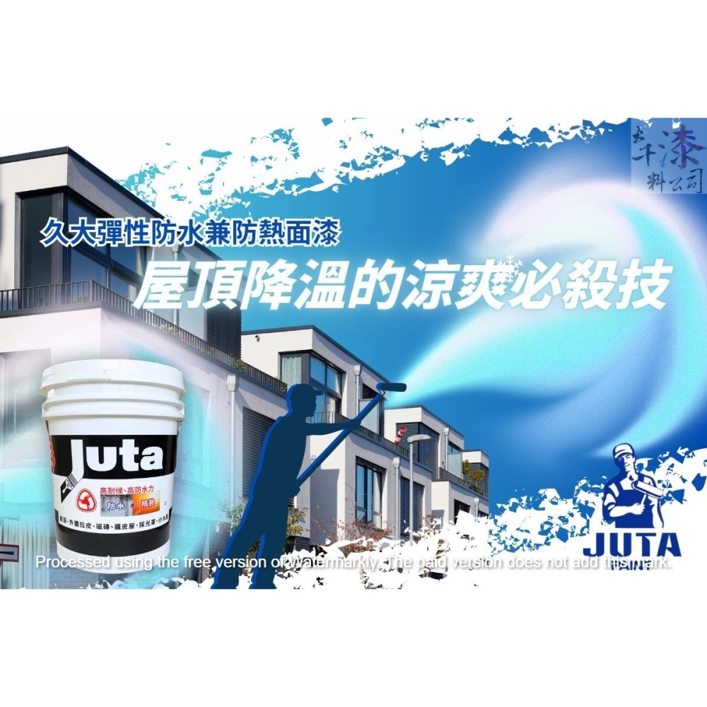 該商品為訂購品,請先付款為您訂購喔,訂購品恕不退換,謝謝您。 型 別: 使用耐候,耐鹼性非常優異之彈性壓克力樹脂,配合特殊顏料、防熱粒子及填充劑 精製而成。 用 途: 混凝土建築物屋頂壁面外壁木材,烤漆、鐵材(防銹處理完)之防水防熱及裝飾保護用。 特 性: 牆面細小之裂痕有填平之效果,耐輕微之地震而不會斷裂,若水泥壁面輕微龜裂塗膜可保持完好如初,具有美觀防水防熱之功用。 具優異之耐候性。 彈性佳、抗水、耐鹼、耐候性佳良好。 耐熱隨室外溫度高低值約2℃-5℃ (視建築物材質而定)。 塗裝方法: 刷塗、噴塗、滾塗(分二道或三道施工,建議乾膜厚度 500μ以上)。 顏 色: 白色 比 重: 0.9 KG/L 以上。 粘 度: 140KU以上。 乾燥時間(25℃): 指觸3小時以內,堅乾10小時內(25℃,RH=60%)。 塗裝間隔: 4小時(25℃)。 漆膜厚度: 濕膜500μ(Microns),乾膜250μ(Microns)。 理論塗佈量: 6.2 m2/gal 1.64m2/L 。 調 薄 劑: 自來水。 調薄劑用量: 0~10%。 適用底漆: 彈性防水C、彈性防水D、水性封底漆。 儲藏安定性: 正常情況下,至少一年,避免陽光直接照射。 施工注意事項: 1.使用前需充份攪拌均勻,太黏稠可酌加自來水調薄,但以不超過規定用量為限。 2.被塗物表面之油脂、灰塵、水份及其他附著污物,必須清除乾淨才能施工。 3.新水泥漆牆因含有多量水份與游離鹼性物質,必將降低漆膜性能與附著性,必須等 2~3星期,待其 完全乾燥後,水份值在12%以下,才可施工。 4.被塗物表面,若有水泥面粉化情形可用彈性防水C或彈性防水D做打底。 5.若有龜裂處直接用面漆作填縫或用久大彈性補士填縫,第一層塗刷完畢如需塗第二層,需等第一層 完全乾燥後再塗第二層彈性防水防熱漆塗料,直至達到所需膜厚為止。 6.避免於10℃以下施工。 ( 底漆 → 面漆 → 面漆 )
