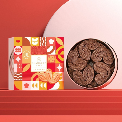 蝴蝶酥是一種流行於歐洲各國的點心,在法國,更是隨處可見的平民美食。香貝里的經典原味蝴蝶酥便是根據法國Pierre Hermé大師的配方加以改良而成,材料雖然簡單,但製作過程卻極為繁瑣。將麵粉、天然奶油和水等材料搓揉而成的生麵團,放入冰箱裡熟成半天,再完整包覆在發酵奶油上。在每次的桿壓,摺疊之後,必須放入冰箱直到麵團徹底地鬆弛,如此重覆6次3折之後才能完成這730層的自製酥皮。細心整型之後再灑上令人誘惑的糖粒,放入250度的烤箱高溫烘烤,讓每一片蝴蝶酥都得到充份的膨脹。歷時三天,才能製作出外層酥脆,內在卻又入口即化的蝴蝶酥喔!