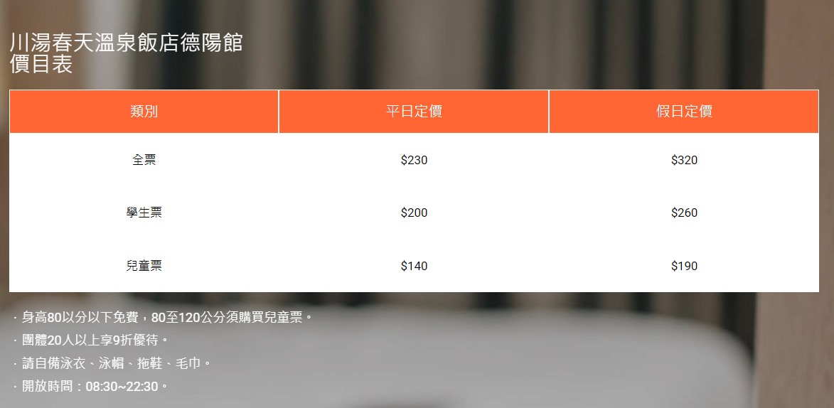 .請自備泳衣、泳帽、拖鞋、毛巾。