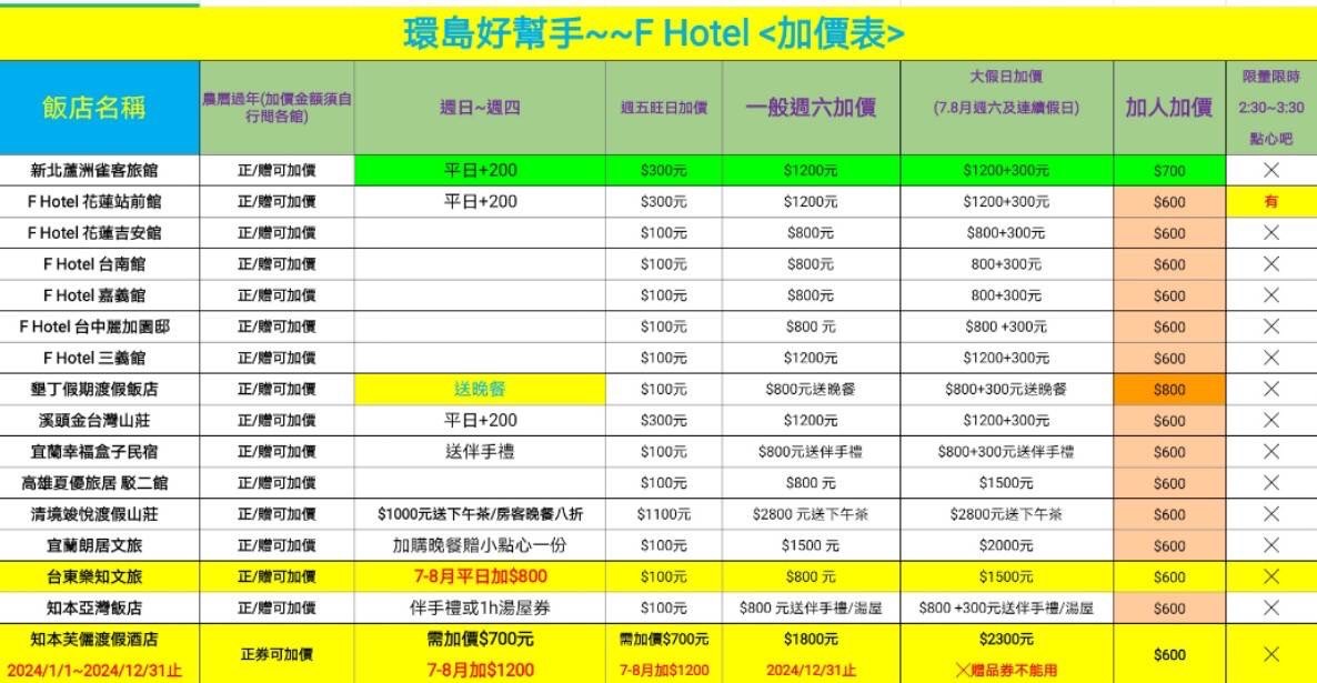 6.兒童早餐加價:115公分以下,如不佔床,不會加收費用,但超過115公分,需酌收早餐費100~150元不等
