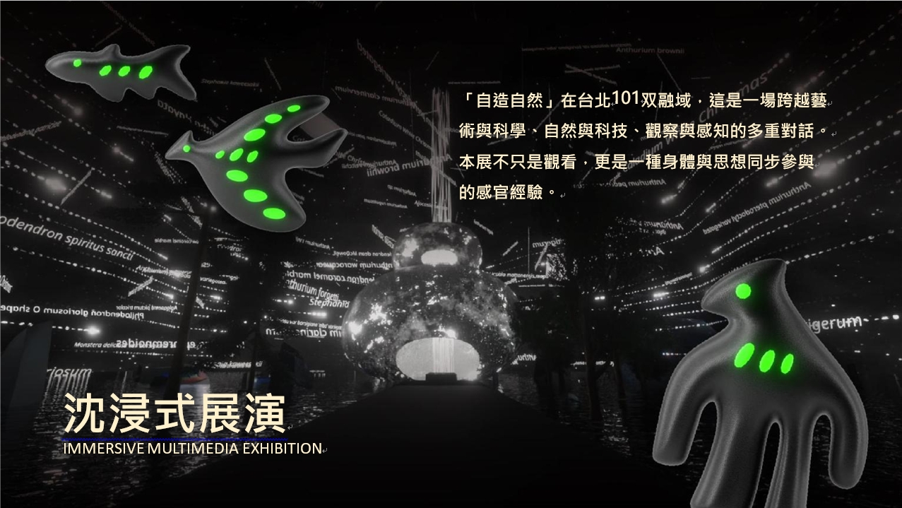 在台北101双融域,帶來一場跨越藝術與科學、自然與科技、觀察與感知的多重對話。本展不只是觀看,更是一種身體與思想同步參與的感官經驗。當生態概念結合AI運算、生物形態與人類文化記憶,展覽現場將化為一座共生的感知網絡,邀請每一位觀者重新思索「何謂自然」,並在互動中成為創造的一份子。