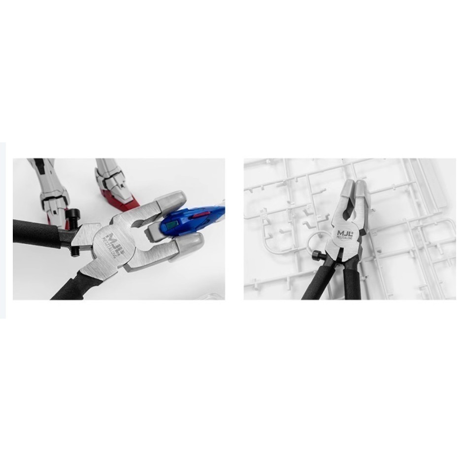 採用高碳鋼段壓,整体特殊熱處理。防滑磨砂手把,握感舒適,配置限位螺絲,防止用力過大,另有鉗口膠套包邊。不傷版件