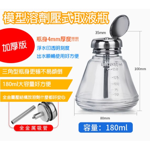 一瓶放硝基溶劑 沾棉棒洗噴筆針、洗筆壺、洗噴筆筆身、也可以放去漆溶擦掉上錯色的地方