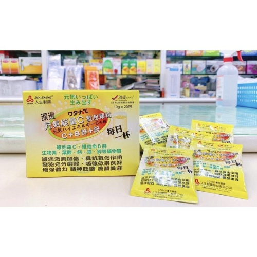 【渡邊 元氣能量C 發泡顆粒C+B群+鋅】 🔆富含維他命C、維他命B群、生物素、葉酸、鈣、鎂、鋅等礦物質 🔆元氣加倍,具抗氧化作用 🔆發泡充分溶解,吸收效果良好 🔆增強體力 精神旺盛 養顏美容 🔆 cGMP優良藥廠人生製藥股份有限公司製造生產 🔆無糖配方,甜食節制者可食用。 品名:渡邊 元氣能量C 發泡顆粒C+B群+鋅 成分:乳糖、蘋果酸、碳酸氫鈉、麥芽糊精、維他命C、葡萄糖酸鋅、氧化鎂、碳酸鈣、蔗糖素(甜味劑)、菸鹼醯胺(維他命B3)、本多酸鈣(維他命B5)、維他命B6、維他命B1、維他命B2、維他命B12(0.1%)、葉酸(維他命B9)、生物素(維他命B7) 產地:台灣 保存期限:三年 產品製造日期:詳見商品包裝標示及說明 有效期間或保存期限:詳見商品包裝標示及說明 食用量- -將本品一包,溶入約300cc的冷水或溫水中,也可加入整瓶礦泉水中飲用,水注八分滿,預留發泡空間,待完全發泡溶解後飲用。 -本品迅速溶解後,具有檸檬口味,有如喝汽水的感覺,好喝又營養,經過發泡溶解,人體吸收效果良好,建議每天1包。 .一日請勿超過1包,多食無益 .本產品含有乳糖 藥局許可執照 藥局名稱:成吉藥局 藥商地址:高雄區楠梓區楠梓東街74號 藥局許可執照字號:高市衛藥局(楠梓)字第0042號 藥局諮詢專線:(07)351-3339 產品製造日期:詳見商品包裝標示及說明 有效期間或保存期限:詳見商品包裝標示及說明 ——————————————— 💡購買前請詳讀以下資訊💡 .聊聊服務時間:每日9:00-24:00 .確定購買後再行下單,未取件者將列入黑名單 .包裹拆封時,務必全程錄影,保證彼此,如有任何疑問請善用聊聊溝通 . 網路商城與實體門市同步販售 商品來源保證公司貨 請安心購買 成吉藥局 成為您最即時的幫助