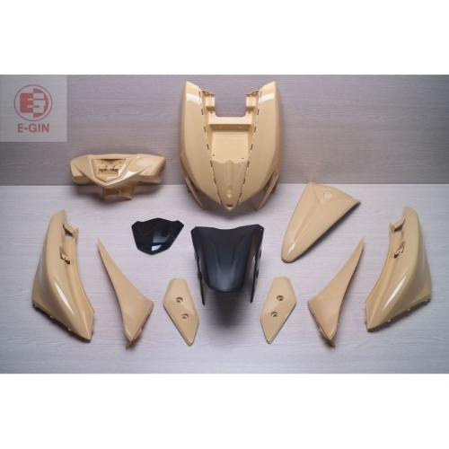 烤漆部份:把手前蓋.鏡片(PC黑), 大盾牌(奶茶色), H殼, 前土除(PP黑), 前叉蓋左, 前叉蓋右, 邊條左, 邊條右, 側蓋左, 側蓋右