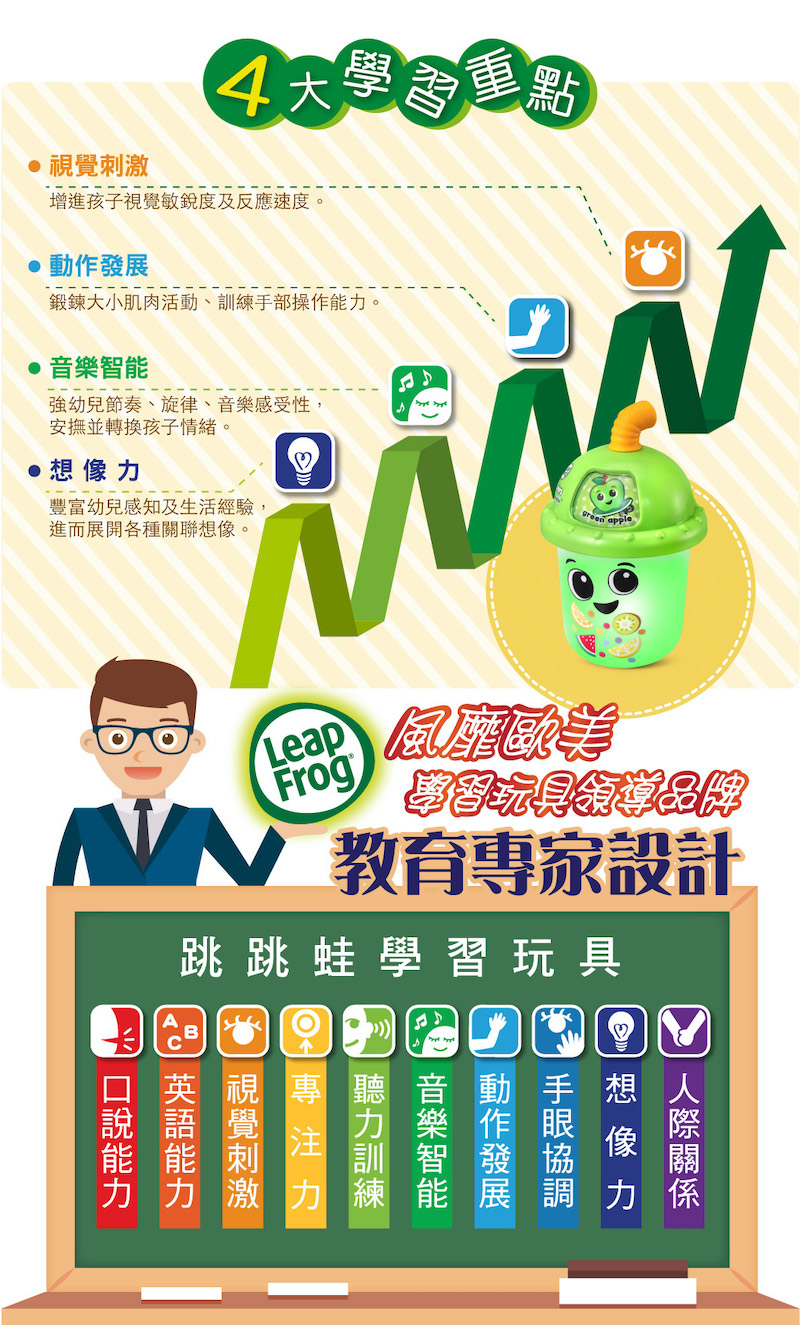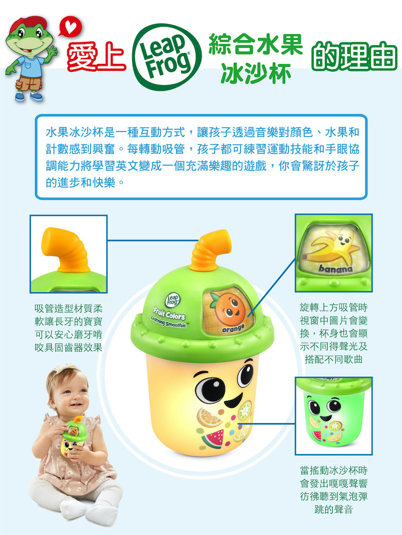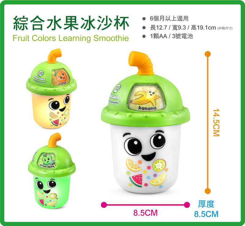 ●綜合水果冰沙杯的五種水果朋友會以英文自我介紹,讓孩子每一轉動更有互動感