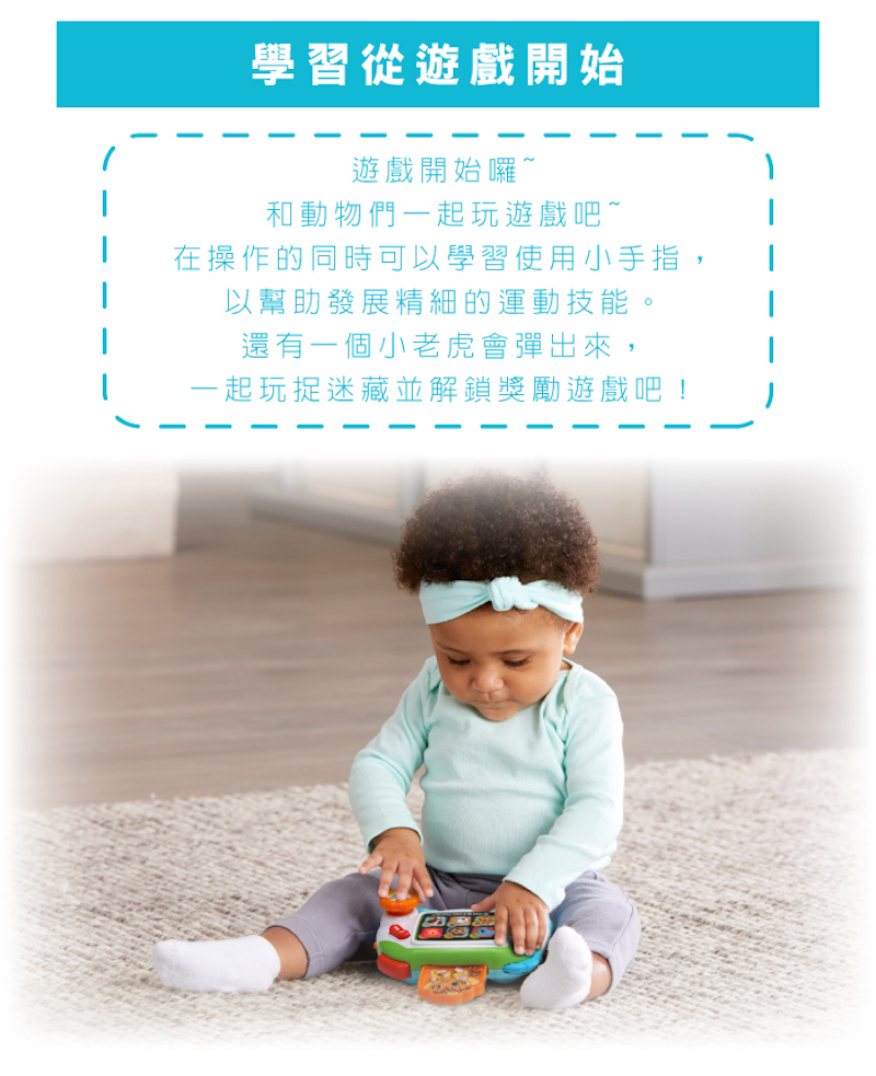 *按下紅色的肩部按鈕,使老虎彈出。聆聽有趣的聲音效果和短語,並玩獎勵遊戲