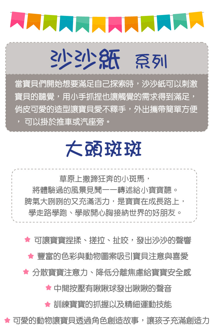 ●內有寶貝最愛的沙沙紙,可有效安撫寶寶的情緒。