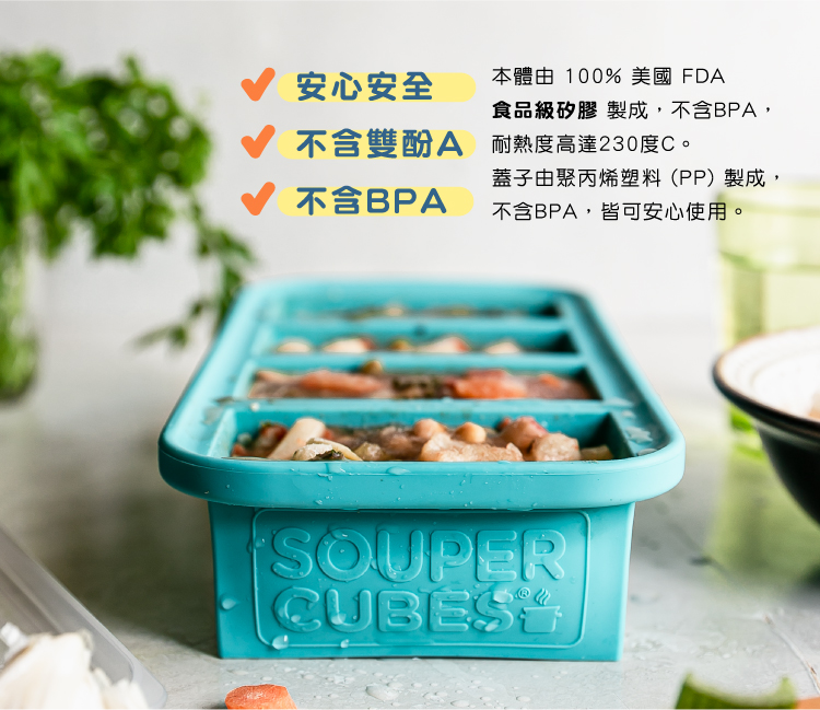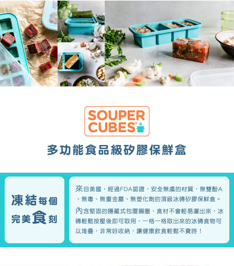 【Souper Cubes】多功能食品級矽膠保鮮盒6格(125ML/格)