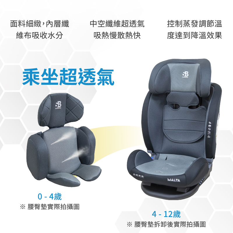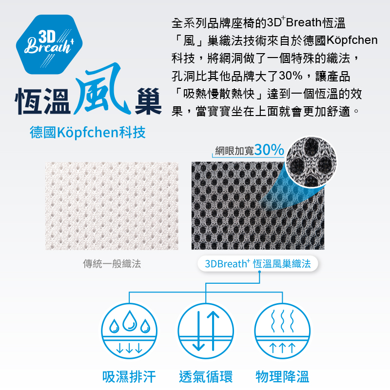 ●恆溫風巢高透氣座布,讓寶寶一路舒適
