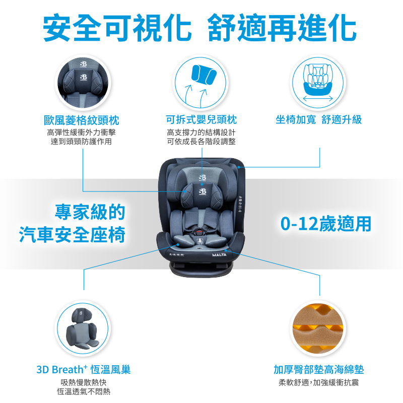 【適德寶SafetyBaby】Malta 0-12歲全年齡雙向汽車安全座椅-多色可選