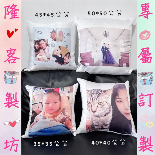 #照片抱枕 #來圖訂製 #客製化抱枕 ❤️現貨款式❤️ 👉尺寸 35*35 40*40 皆為白底 照片範圍約A4大小 👉尺寸35*35 40*40 45*45 50*50 皆為白底 照片範圍約A3大小 👉有區分 單面 雙面 印製價位 👉材質 布面 絨面 (絨面目前只有40*40大小) 👉內容物包含 枕套.枕心.提袋 👉布可拆洗 (請勿用漂白水) 👉可開收據聊聊告知唷~ 👉下單當天可出貨,超商2-5日到貨 急單請先告知。 👉蝦皮宅配請先聊聊告知 👉大量20起有優惠 ✅商品皆為手工製作若要求完美請繞道。 ✅印刷品有許色差是正常範圍不允許退貨。 ✅客製化商品無七天鑑賞期售出皆無法退換貨。 ✅收到包裹開心拆貨時還請記得全程錄影喲📹 ✅商品確認沒有問題的話, 記得給萌貓客製坊★★★★★好評價~謝謝! 最後㊗️福各位朋友們幸福快樂😘 台灣印製 枕心比較蓬鬆 #送禮 #自用 都方便 若有其他特殊要求可以溝通 Ps.超商取貨最多8顆 枕心會壓縮(不介意者可下單) 若不壓縮超取最多2顆 (請分開下單) #客製化禮物 #甜14客製化  #節慶送禮 #生日禮物 #情人節禮物  #七夕禮物 #新婚禮物 #畢業禮物 #教師節禮物 #寶寶禮物 #母親節禮物 #周歲禮物 #父親節禮物 #紀念日禮物  #訂製禮物 #聖誕節禮物 #送禮首選 #過年禮物 #萌貓客製化 感謝您訂購本賣場產品 我們都會用心製作 如有特殊需求請告知 (另外印刷色差不再退貨範圍內. 若商品收到有問題請務必拿拆貨影片跟我們合對唷)