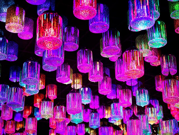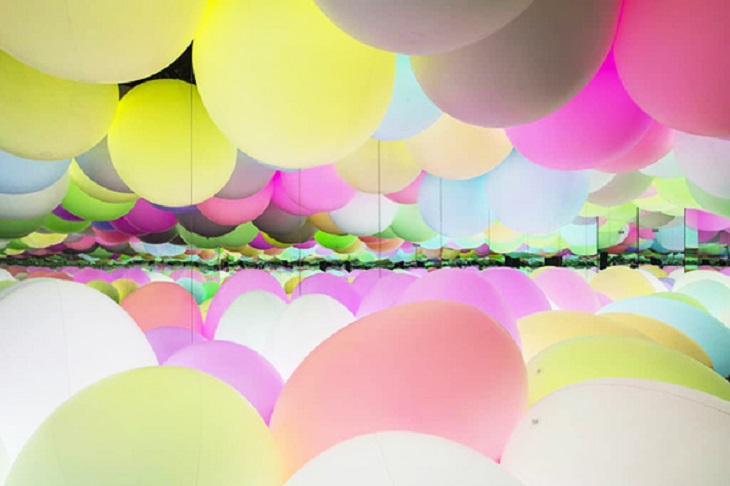 仿佛糖甜蜜的雲朵,數百顆澎彈的「大泡泡」,形成輕盈柔軟的漫延雲海,可變化出夢幻的七彩暖光。