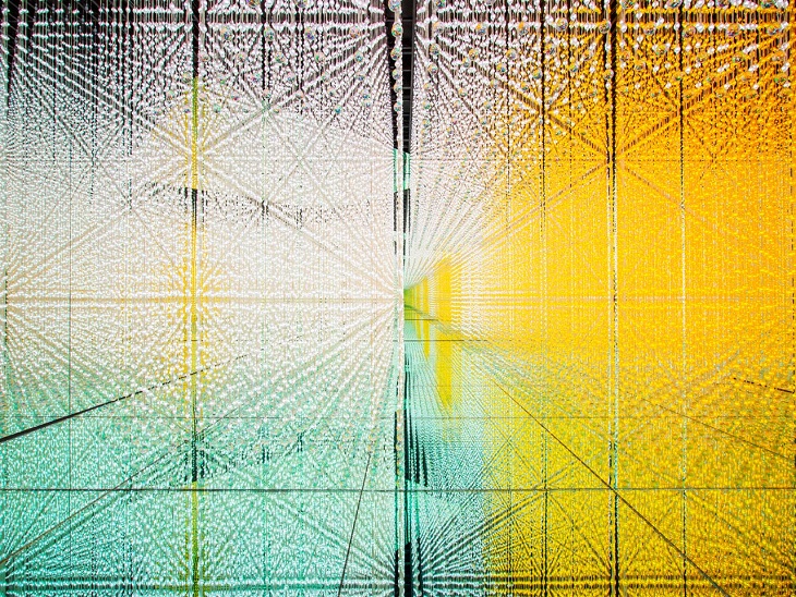 光束流淌出旋律,融身璀璨光境,境與鏡之間,連接來自過去的映射和未來的鋪陳,近5000條水晶燈,構成晶瑩剔透的光束矩陣,融身於璀璨光境。