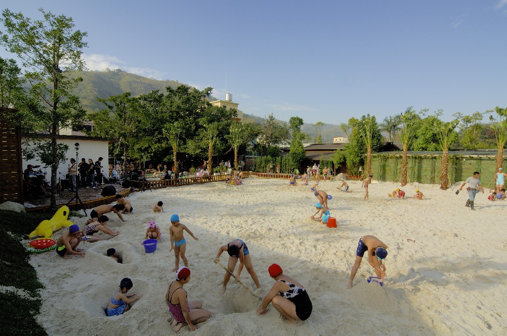 踩在細緻厚實的白沙上,四周棕櫚樹環繞,盡興沙雕、盡情沙浴,