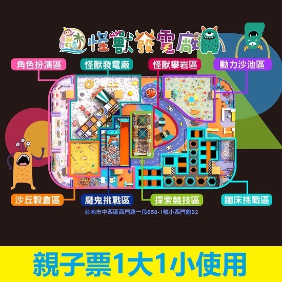 1、本券可一大一小全區全日𣈱玩【怪獸發電廠】。