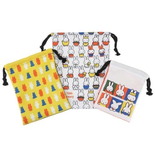 「抽繩袋」米菲 迪克布魯納 繪本角色 抽繩袋 3P抽繩袋 70週年歷史 馬裡莫工藝 因為有3種尺寸,所以可以根據用途使用 迪克布魯納的人氣繪本[miffy/ 米菲醬]商品中又出現了可愛的新商品,這是經典人氣商品[抽繩3張套裝]有大中小3個尺寸,可以區分使用。 因為可以分開刷牙套裝和小物件等,所以一定會大顯身手。 還有其他各種各樣的商品,按照自己喜歡的來湊齊吧,
