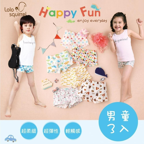 Lolo squirrel 莫代爾 萊卡精梳棉 兒童內褲 男童內褲 褲襠(3入裝 )