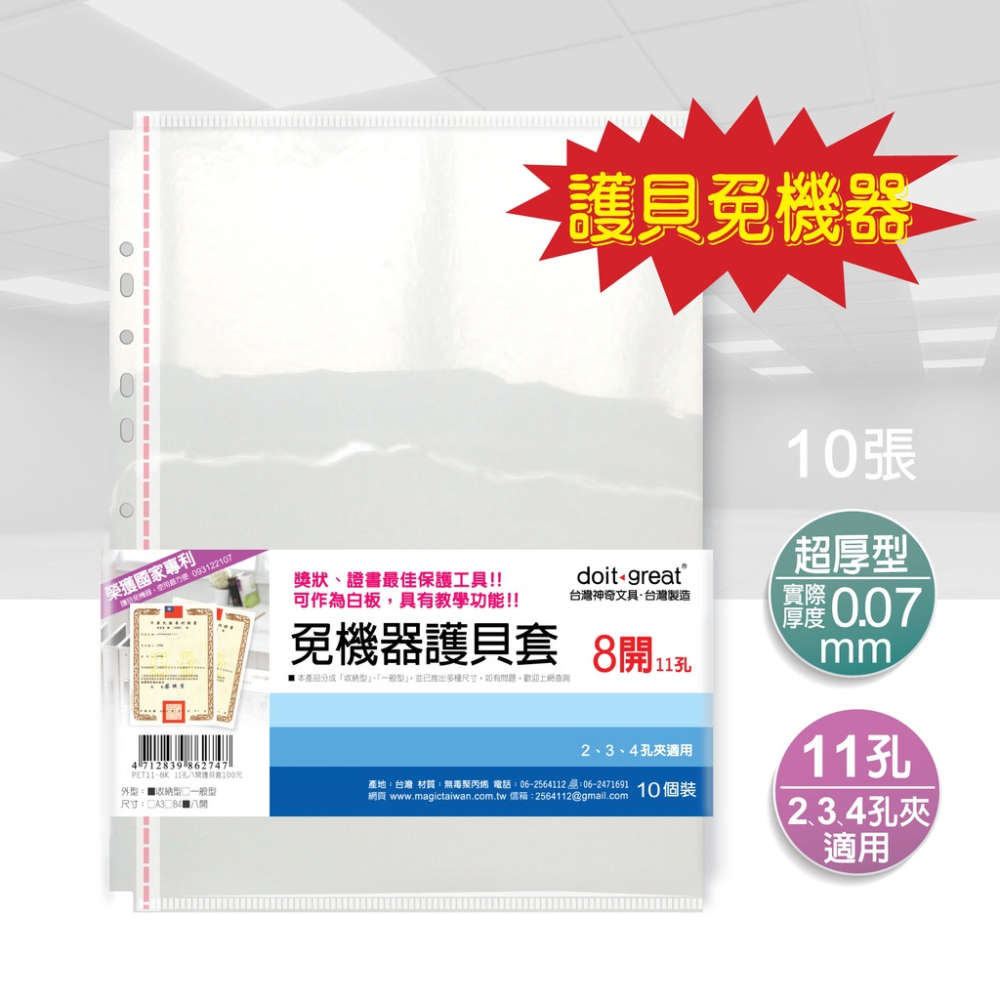 產品名稱:11孔八開收納型免機器護貝套