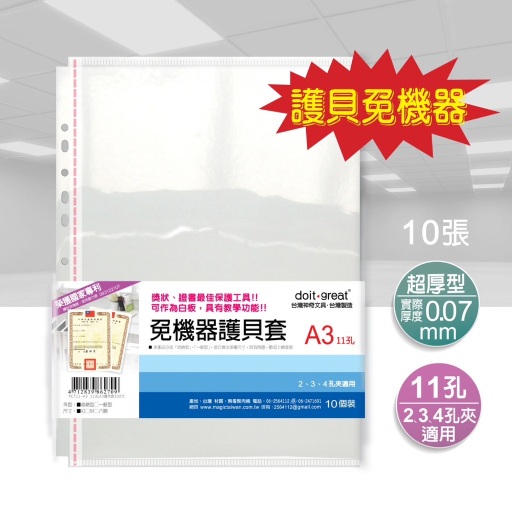 產品名稱:11孔A3收納型免機器護貝套