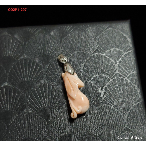 CO2P1-207天然momo珊瑚手工雕刻項墜 23.4mm
