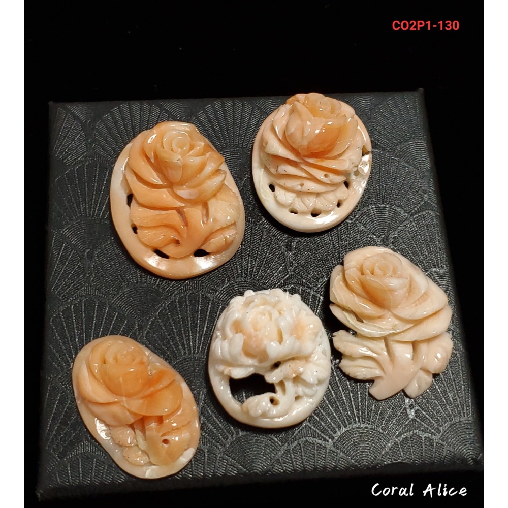 🌟Coral珊寶手作-天然深水珊瑚手工刻花件(無孔) CO2P1-130