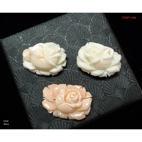CO2P1-656天然白/粉珊瑚手工雕刻玫瑰花(無孔) 28.0-33mm