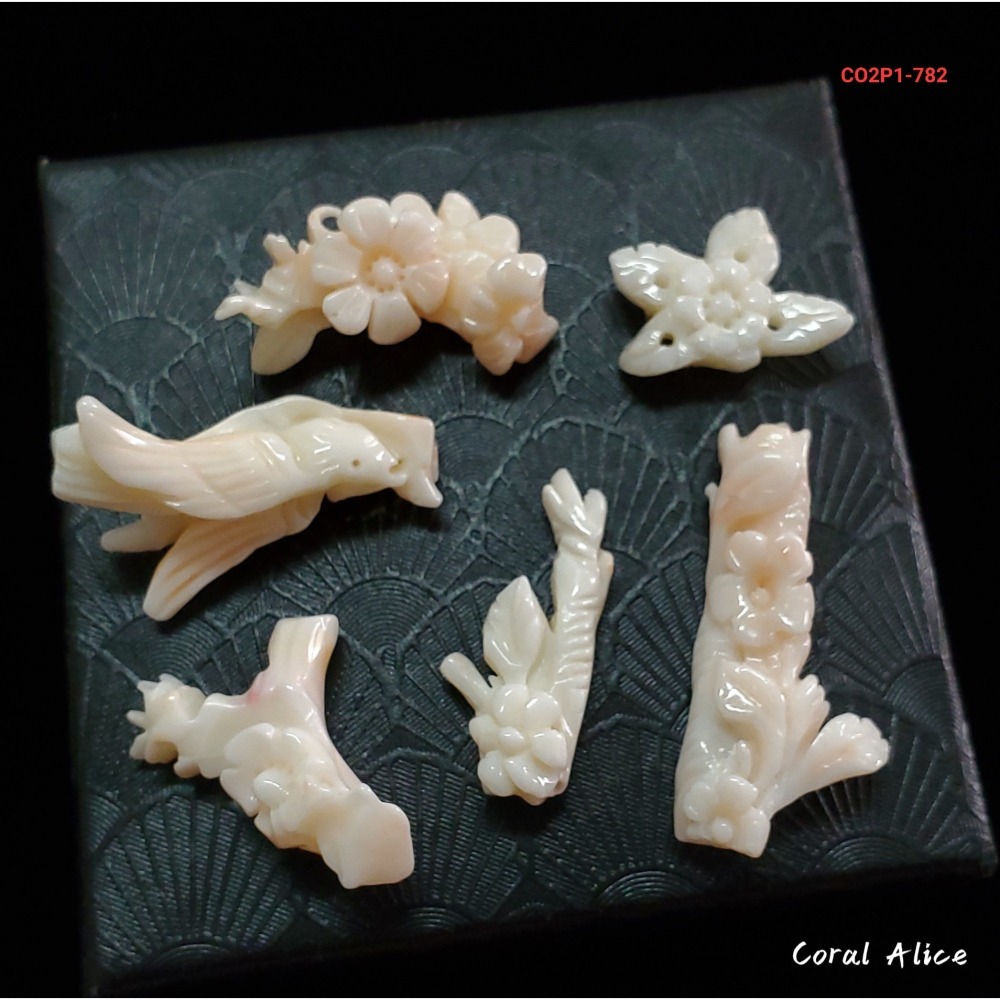 CO2P1-782天然白珊瑚(帶粉)手工雕刻