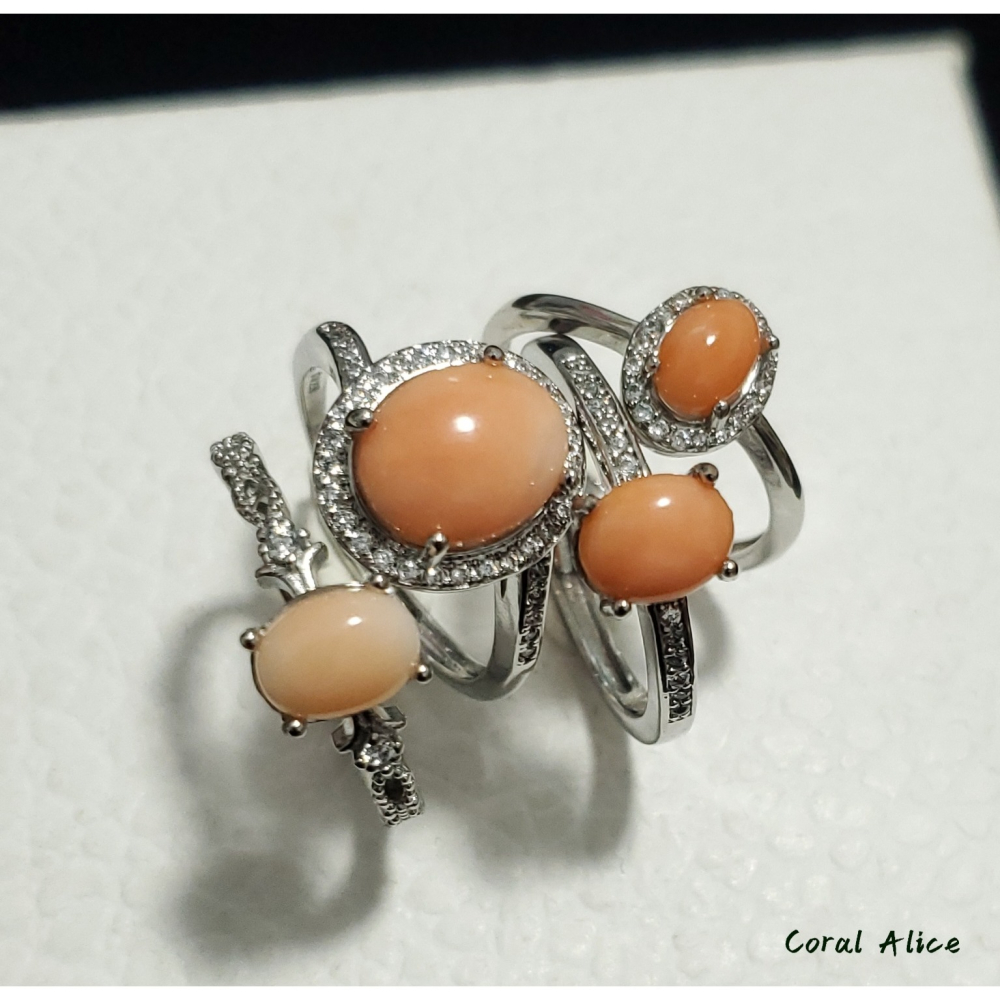 CO3P1-575天然深水珊瑚/momo珊瑚(淺色)造型戒指(活圍)