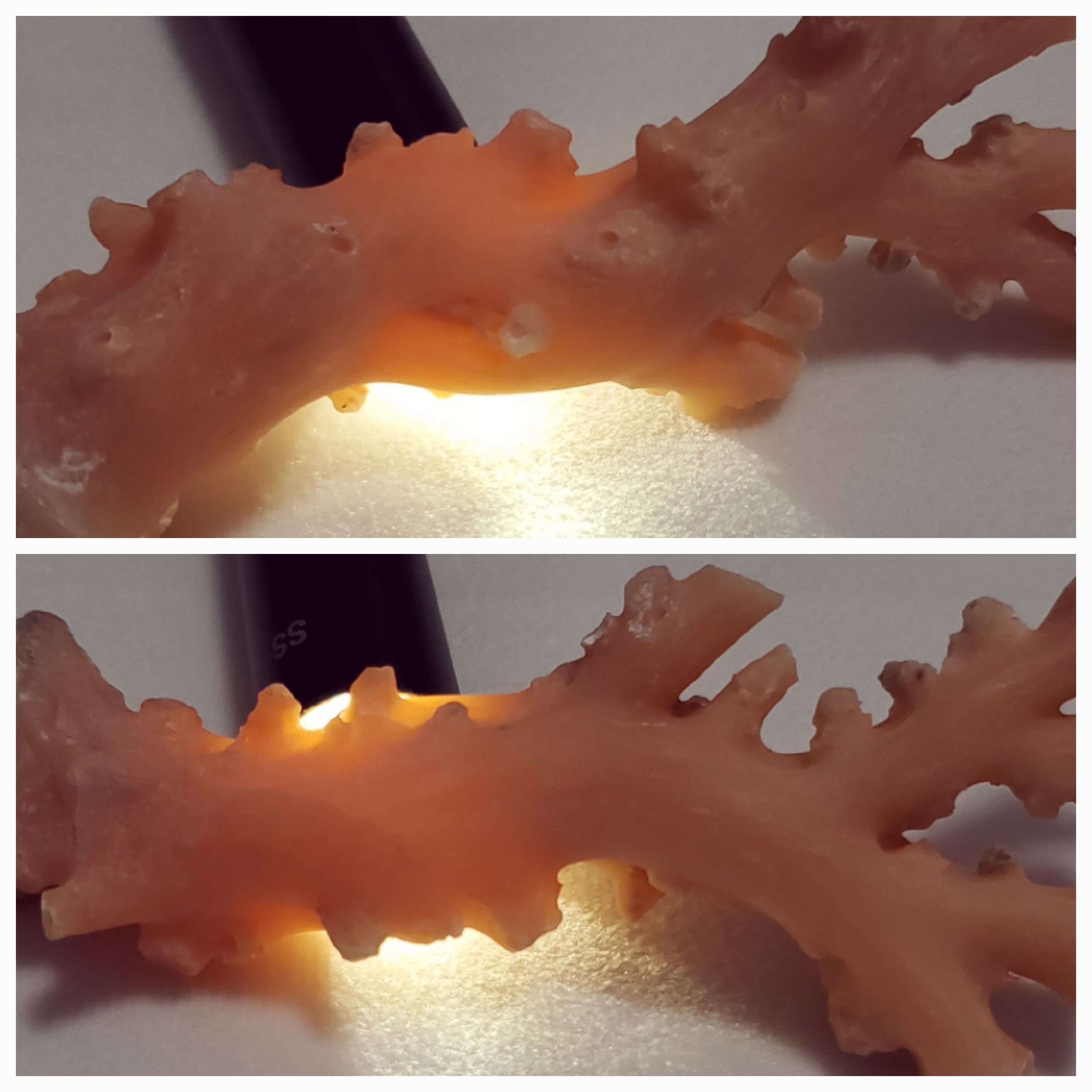 本珊瑚為原始淺色(aka boke),又稱為angle skin (天使之肌)