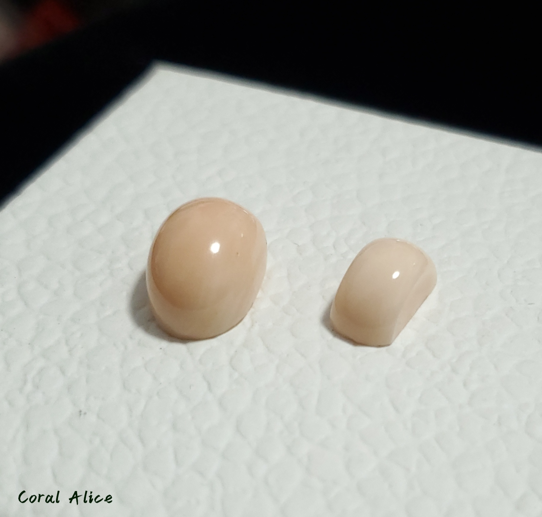 **一般阿卡aka珊瑚跟momo珊瑚會有特徵性的白色分布在背面或中心,這也是專業人員用來判斷寶石珊瑚真偽的特徵