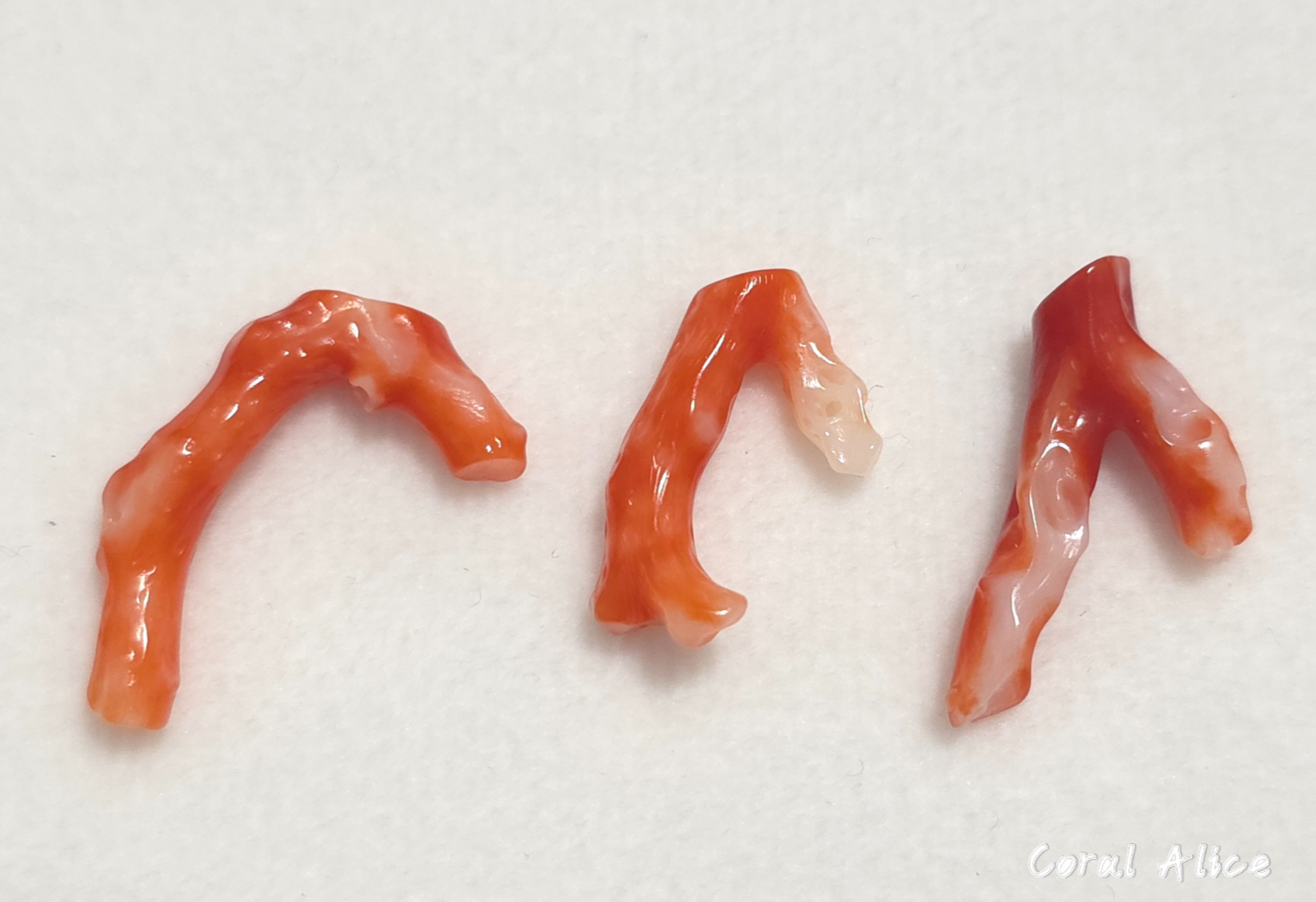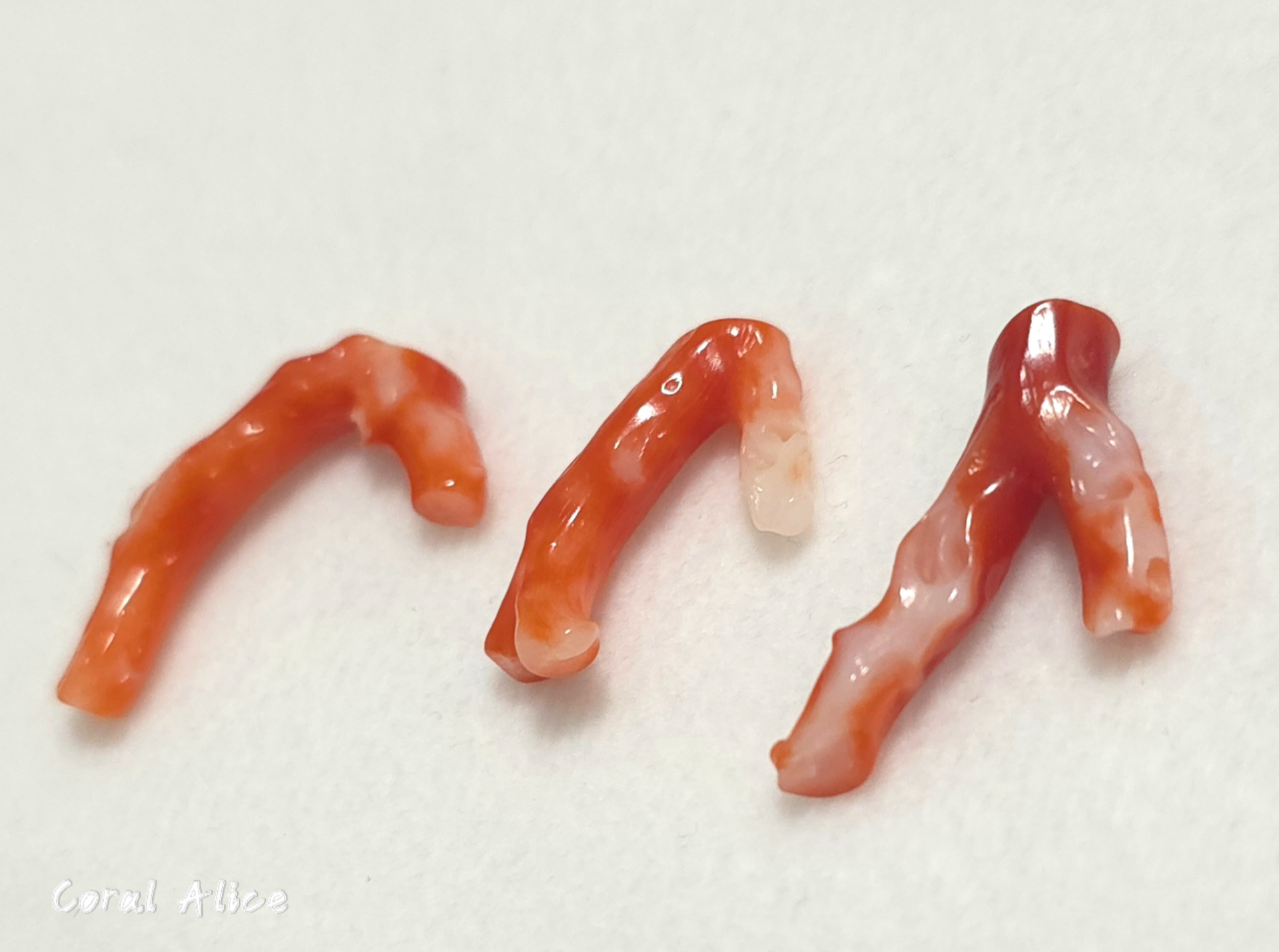 **一般阿卡aka珊瑚跟momo珊瑚會有特徵性的白色分布在背面或中心,這也是專業人員用來判斷寶石珊瑚真偽的特徵