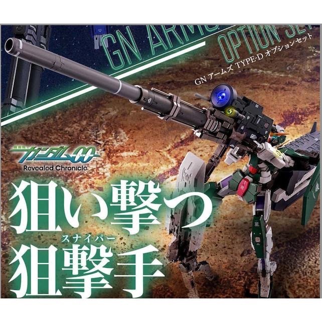 GN ARMS是由私設武裝集團天上人所開發的鋼彈專用大型支援機械,劇中曾出現過能天使鋼彈使用的 TYPE-E 與力天使鋼彈使用的 TYPE-D 兩種規格,平時能掛載於天上人運輸艦「托勒密號」外側作為武裝或單獨作為宇宙戰機使用,但與鋼彈合體後更能發揮最大戰力,不僅能藉由大型推進器大幅強化鋼彈的宇宙空間機動性,更搭載 GN 力場、GN 大型加農砲等強力武裝,依據所支援的鋼彈機體分別在 TYPE-E 裝設大型 GN 劍,於 TYPE-D 設置 2 連裝大型 GN 步槍、GN 飛彈艙。 此次推出的「METAL BUILD GN ARMS TYPE-D 擴充零件組」內容包含了尺寸極為魄力的「二連裝大型 GN 步槍」、「超大型 GN 導彈艙」、「感測器組件」等武裝,在柳瀨敬之、海老川兼武等人的監修下賦予異於原作的設計,搭配另售的「GN ARMS TYPE-E」、「力天使鋼彈」本體就能進行換裝。 尺寸超過 30 公分的「二連裝大型 GN 步槍」如同設定具備槍管摺疊機構,甚至追加原創機構能分離成兩把步槍。