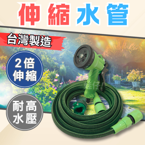 外層特多龍彈性布料,內管TPE軟管,可拉伸延長,水壓達3公斤以上,可延伸原長度之2倍