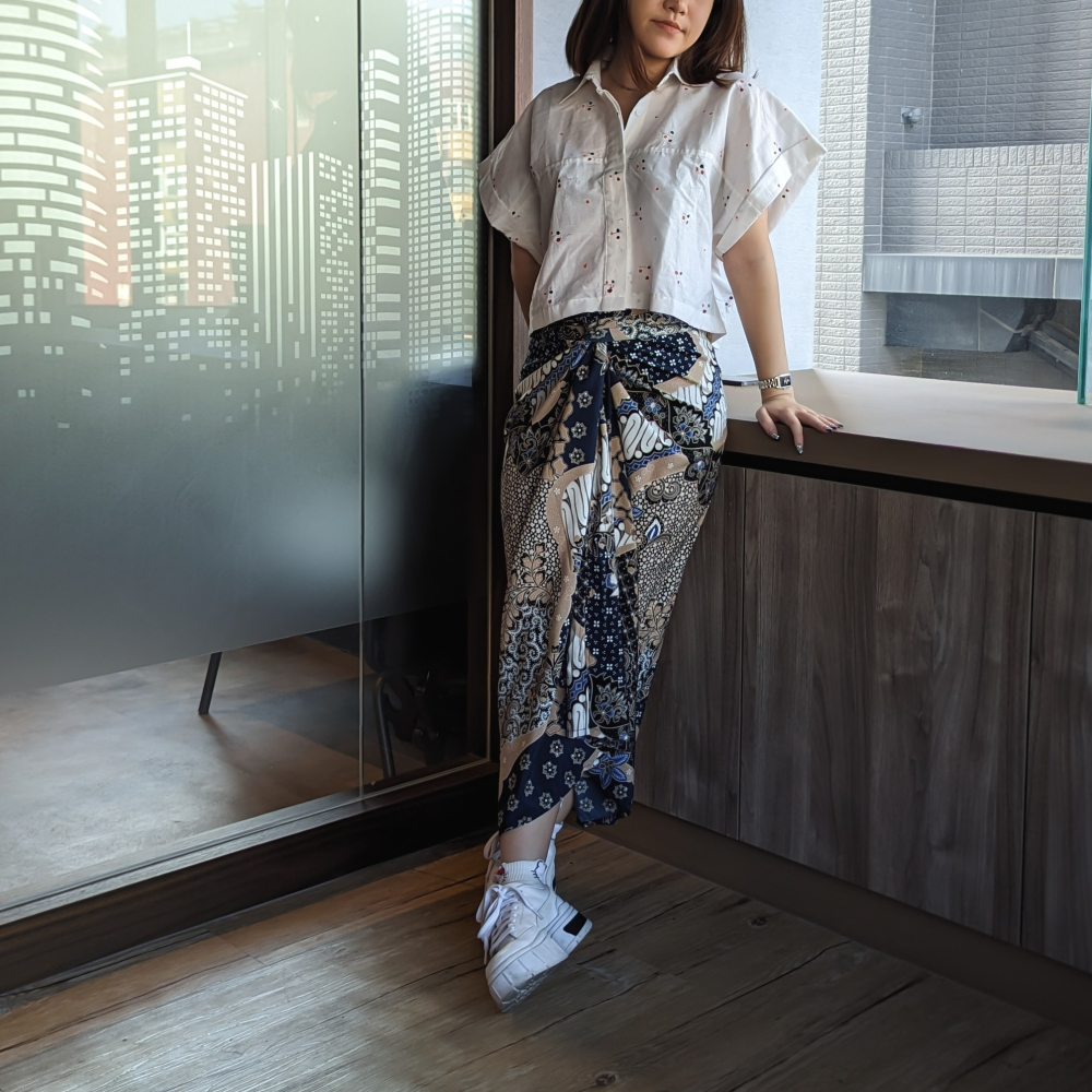 SADEVA Batik Kebaya Wrapped Skirt 可搭配襯衫或巴蒂克和服外套 / Can be combined with a shirt or Batik Kimono Outer / Bisa digabung dengan Batik Kimono Outer 類似裹巾的款式,附有長帶子可繞綁腰間 / Shaped like a wrap with a long belt for tying and wrapping around the waist / Bentuk seperti sarung dan ada tali panjang untuk mengikat dan melilit sekitar pinggang 裙圍 / Skirt Circumference / Lingkar Rok:162 cm 裙長 / Skirt Length / Panjang Rok:103 cm 材質 / Material:BABY TOUCH 此類布料屬於羊毛斯家族,但纖維更厚實,無需裡襯即可不透,且透氣涼爽。 Baby Touch fabric falls under the wool peach family, but features thicker fibers that eliminate the need for lining, while remaining cool and breathable. Baby Touch adalah jenis bahan yang termasuk dalam keluarga wolfis, tetapi seratnya lebih tebal, sehingga tanpa perlu lapisan furing, dan adem. 🇹🇼 -尺寸誤差1至2公分屬於正常範圍 -拆封請全程錄影,商品如有疑慮,需附上完整未剪輯之清晰影片,以保障雙方權益。 🇮🇩 - Selisih ukuran jahitan sebesar 1cm sampai 2cm dianggap wajar. - Mohon dokumentasikan proses pembukaan paket melalui video! - Demi kenyamanan bersama, klaim hanya akan diproses jika disertai dengan video pembukaan paket yang lengkap dan tidak terputus. 🇺🇸 -A variation in seam size of 1 to 2 cm is deemed normal. -Please document the package unboxing process with a video! -Claims will only be processed if accompanied by a complete, uninterrupted unboxing video ! #長裙 #設計感 #優雅 #貴氣 #套裝 #娘惹衫 #度假風 #異國風 #南洋風 #印尼蠟染 #印尼傳統服飾 #女裝