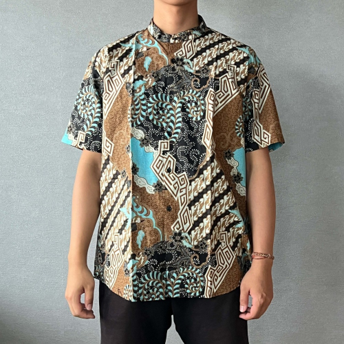 使用印尼傳統蠟染圖案做成大尺碼短袖襯衫
