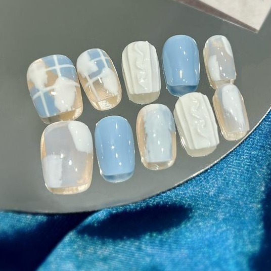 穿戴甲 手工穿戴甲 美甲 小資系列 藍天白雲 小清新唯美L6