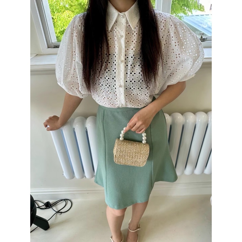 現貨✈️正韓🇰🇷布蕾絲鏤空襯衫珍珠釦襯衫
