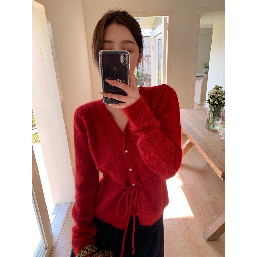 V領顯瘦腰身毛衣(含20%兔毛)