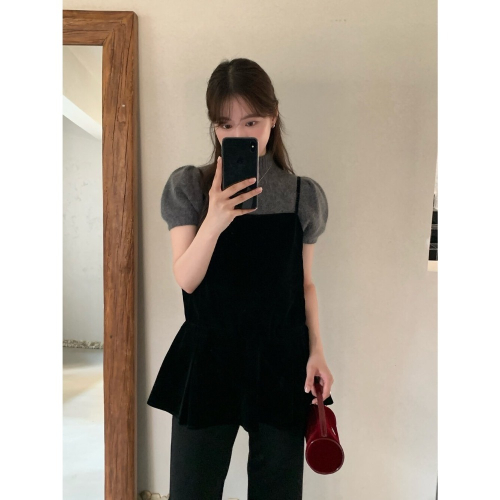 202511小資💘大胸友善🥰絲絨抽繩綁帶疊穿吊帶背心
