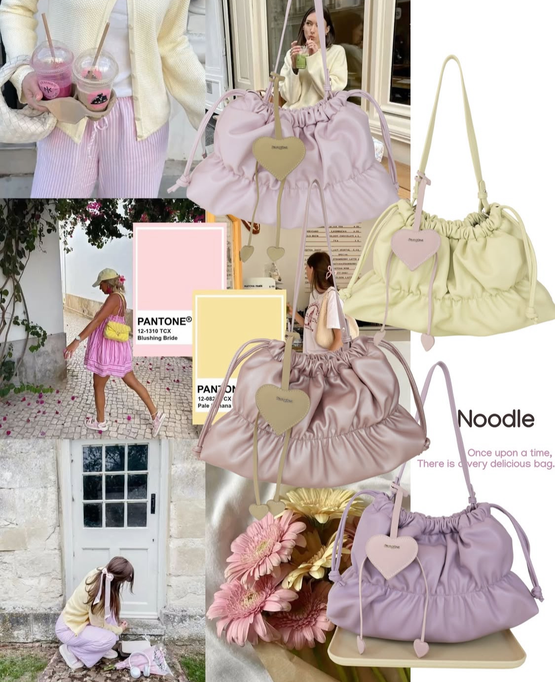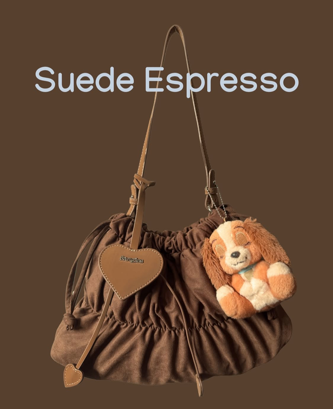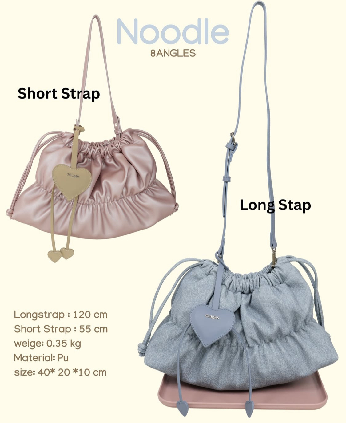 💖:心型掛件是絨面革材質,包身是PU材質,撞色設計!