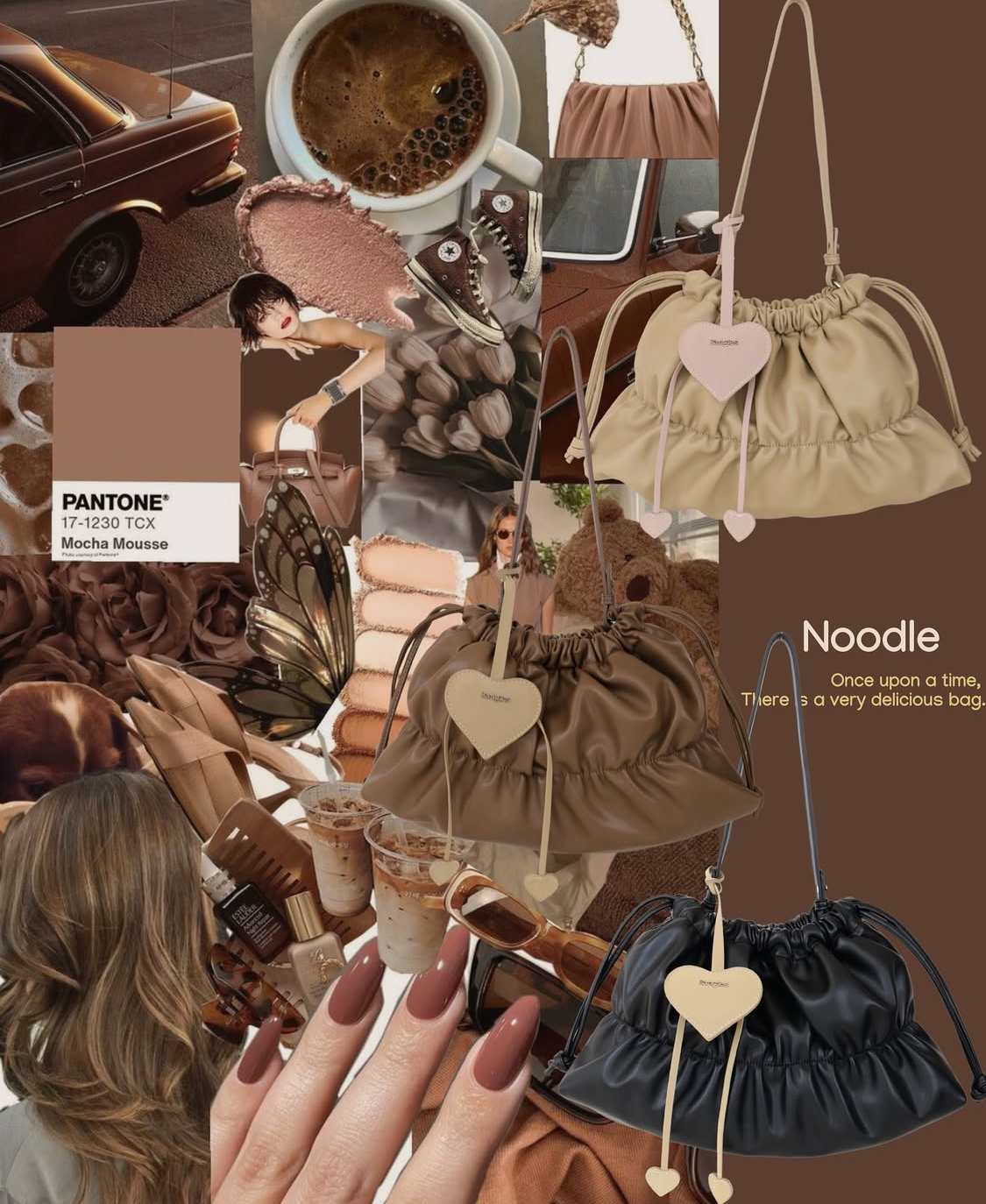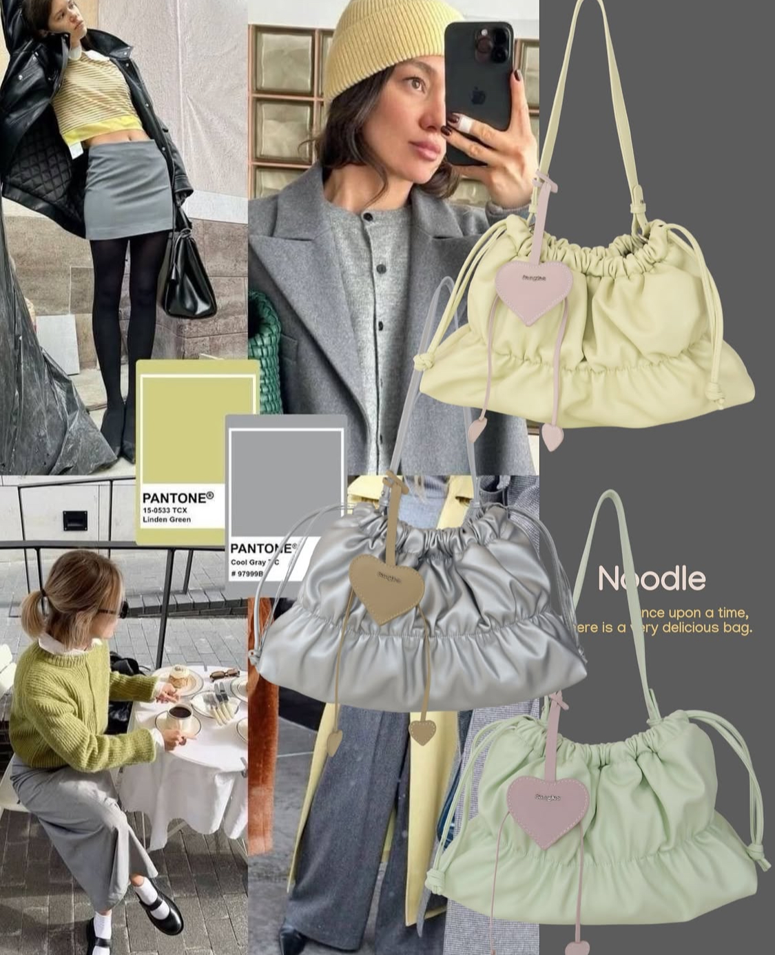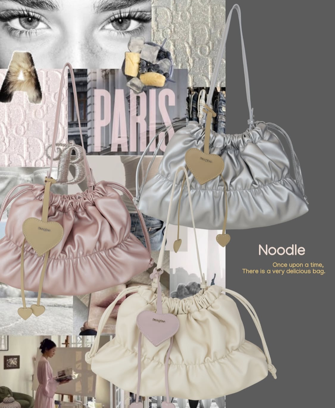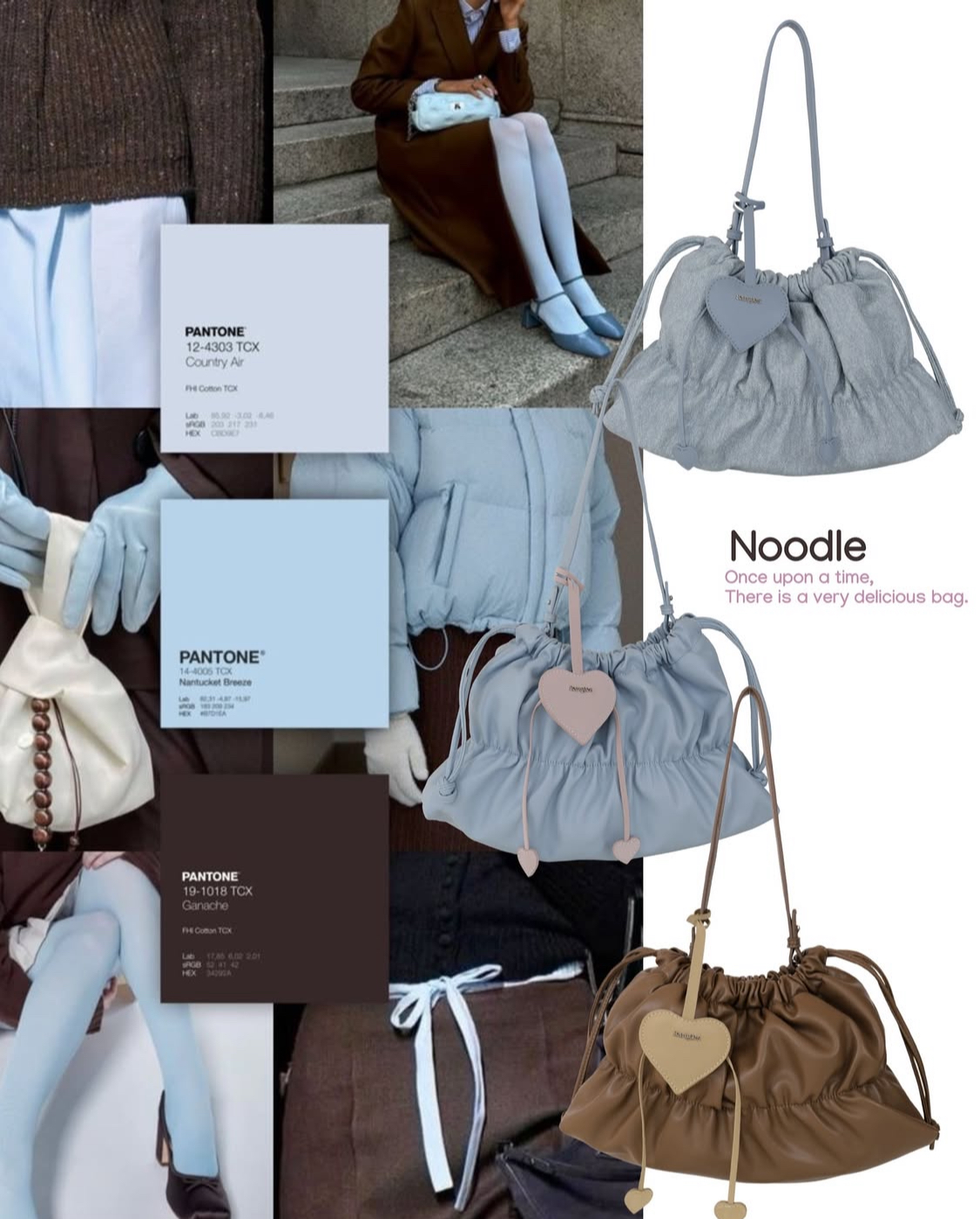 💖:心型掛件是絨面革材質,包身是PU材質,撞色設計!