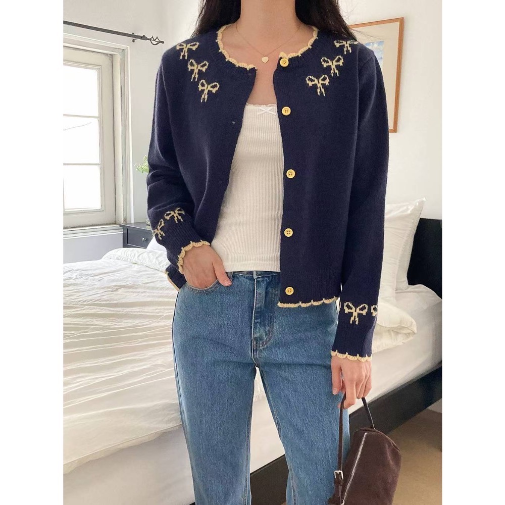 2025正韓🇰🇷氣質滾邊撞色🎀蝴蝶結針織上衣外套 2色