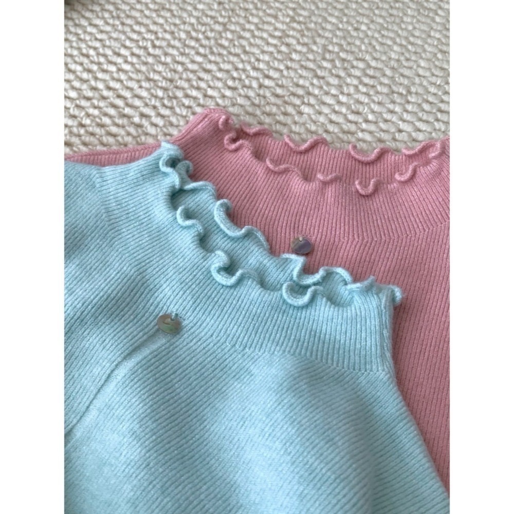 202511小資💘18色必包色彈性針織內搭 韓系一顆扣 半高領波浪滾花邊 打底衫