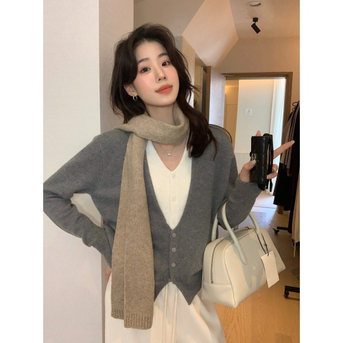 202511小資💘小眾設計感 撞色假二件 顯瘦V領針織開衫 大胸友善 5色